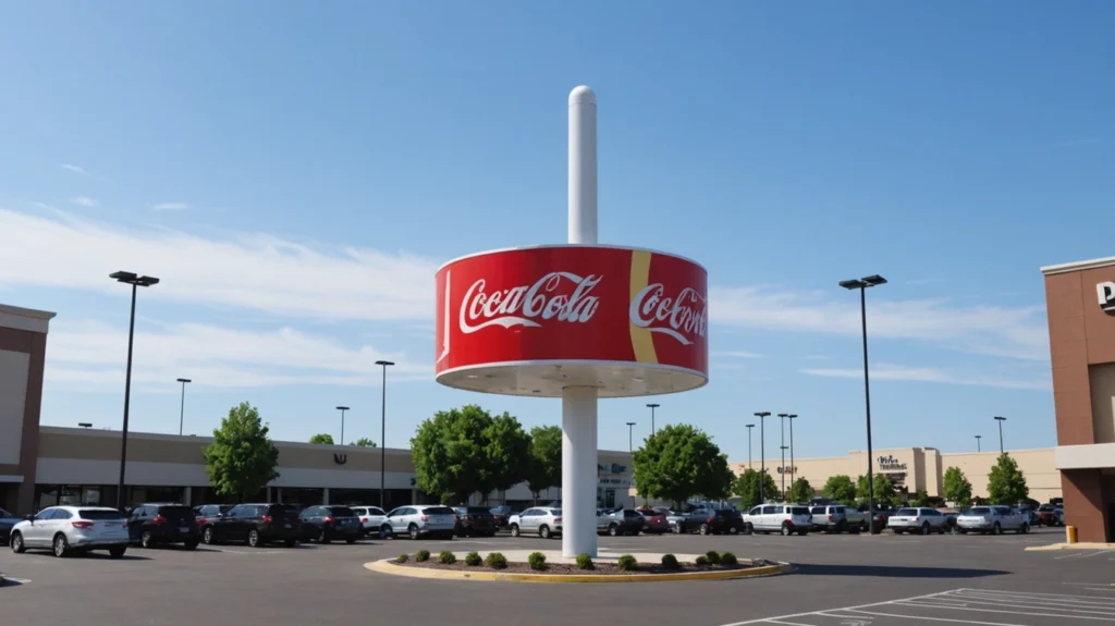 Pylon signs, monument structures, and roadside commercial signage installed in engineered concrete foundations.